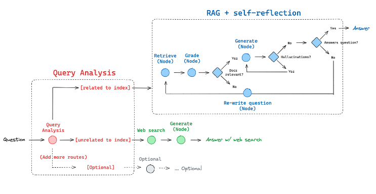 - 검색 문서에 대한 self-reflection과 self-grading을 포함하는 RAG